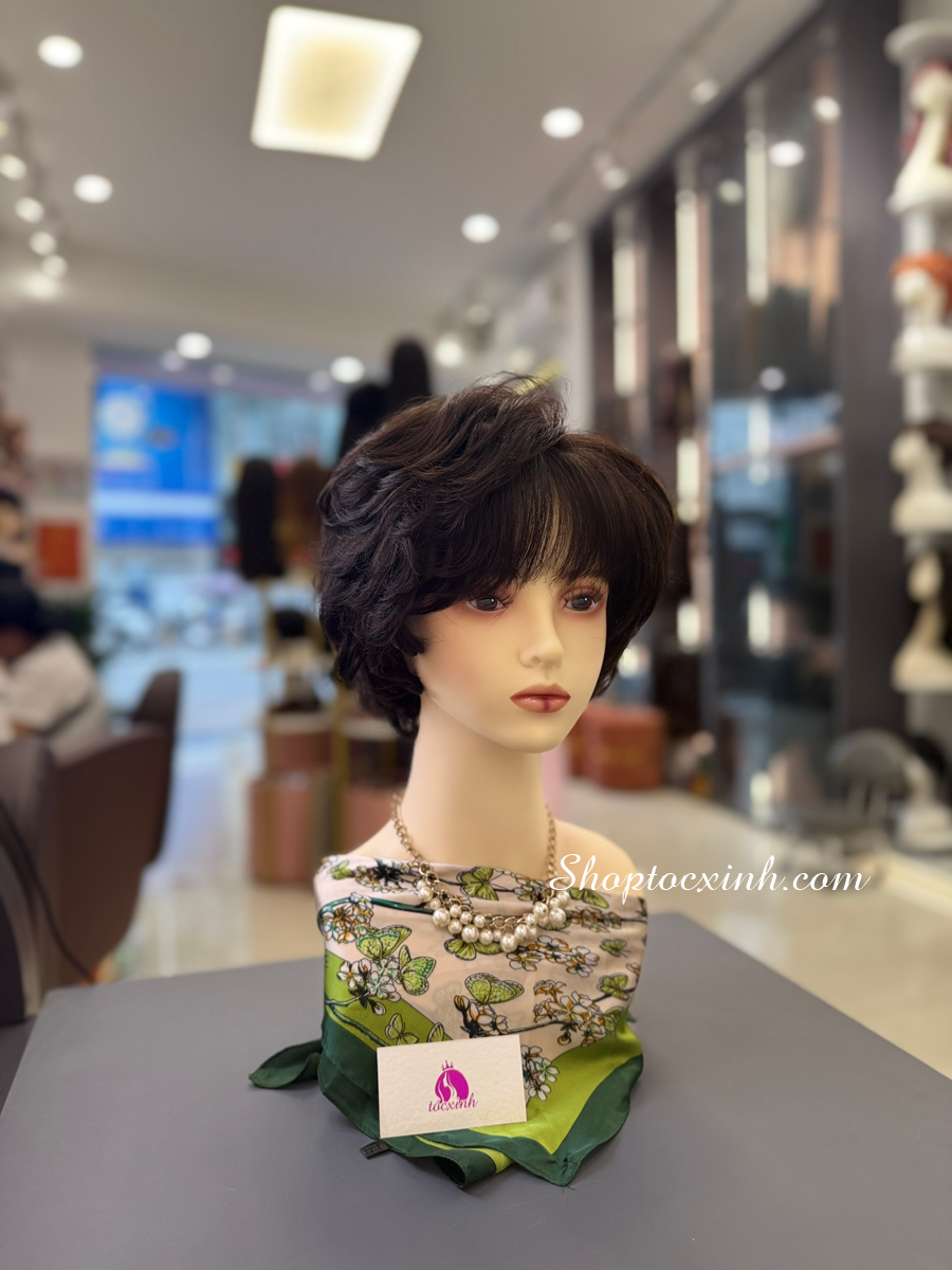 Tóc ngắn nguyên đầu làm bằng tóc thật, thiết kế tạo mẫu theo kiểu tóc khách yêu cầu