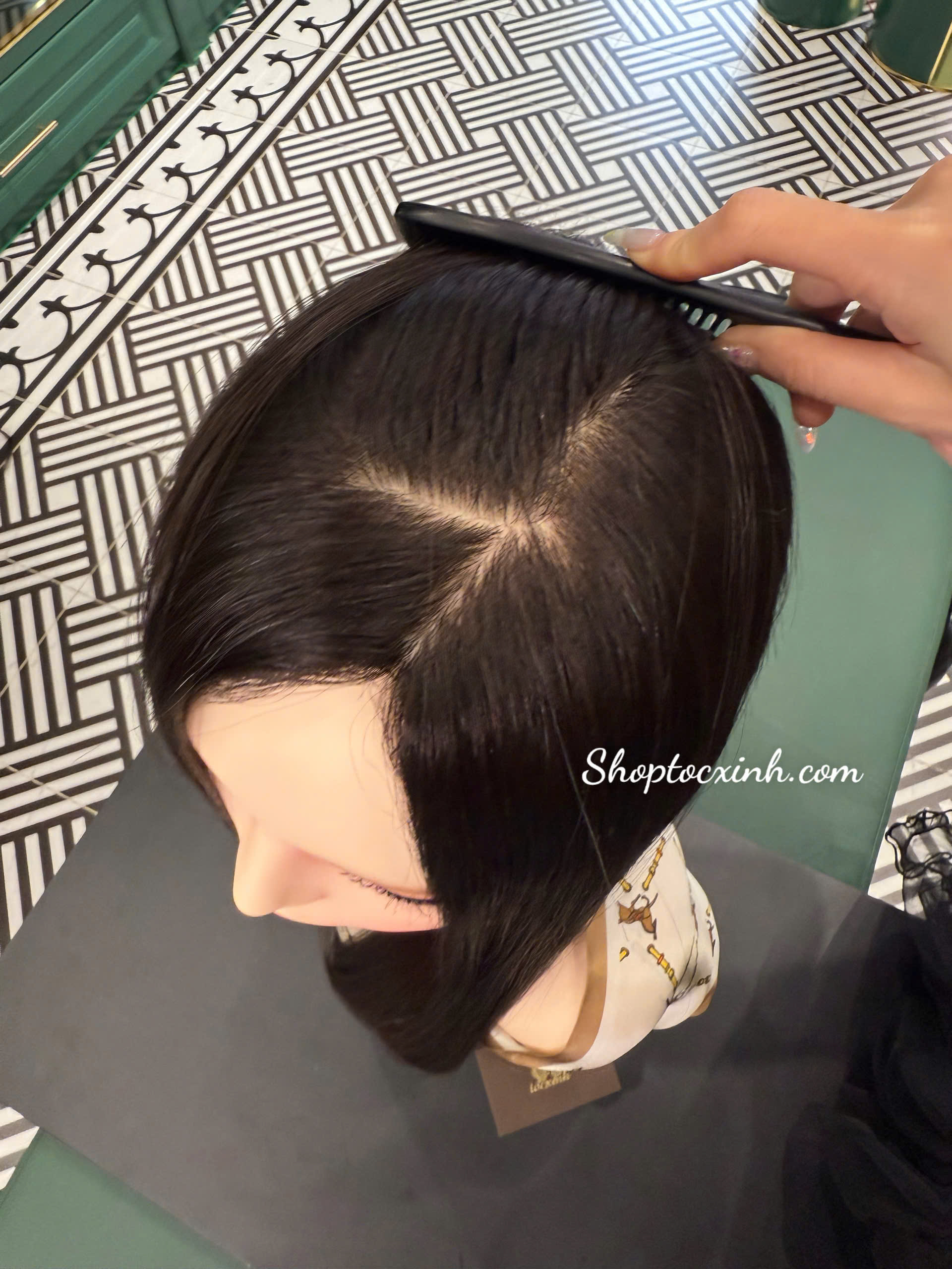 Tóc mái rẽ ngôi tóc thật, khách chọn tóc mái rẽ ngôi giữa hoặc ngôi lệch một bên phù hợp với mình