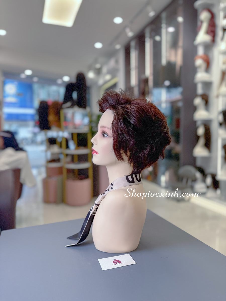 Tóc ngắn nguyên đầu làm bằng tóc thật, thiết kế tạo mẫu theo kiểu tóc khách yêu cầu