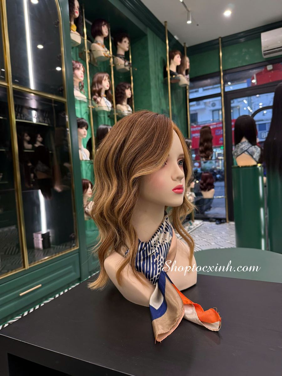 Tóc layer uốn xoăn ngắn nguyên đầu làm bằng tóc thật, thiết kế tạo mẫu theo kiểu tóc khách yêu cầu